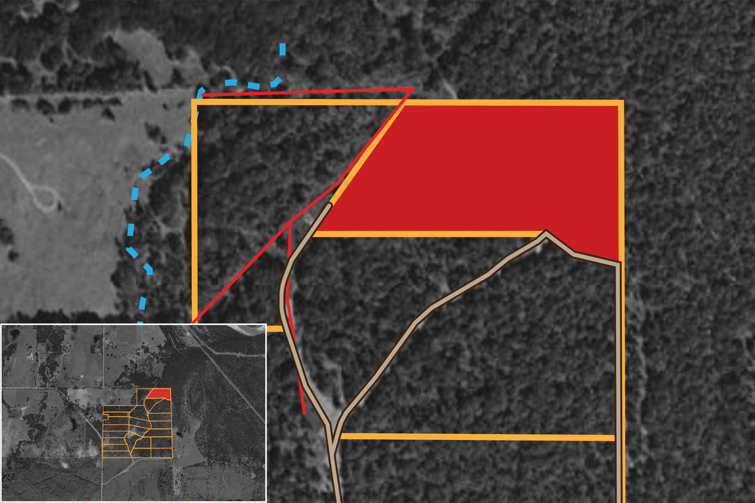 Parcel boundaries, pins, and tract locations shown on this map are approximate and for visual reference only. Boundaries are generated from coordinate data and may not reflect the exact shape of roads, streams, or other natural features that the legal survey follows. This map is not survey-grade and should not be used for legal, engineering, or surveying purposes.