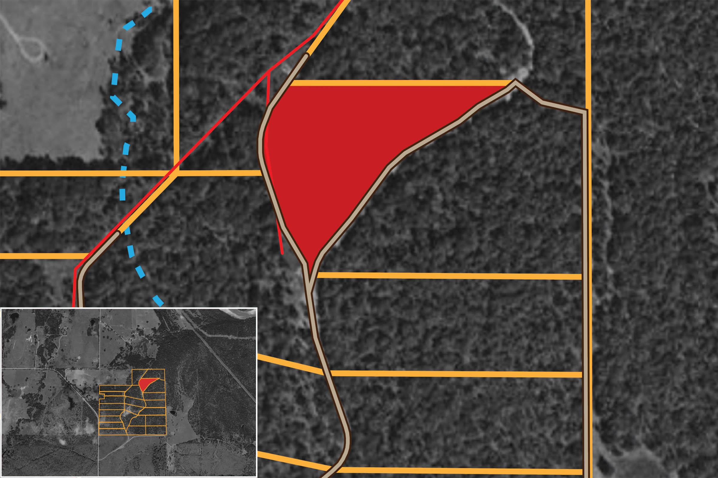 Parcel boundaries, pins, and tract locations shown on this map are approximate and for visual reference only. Boundaries are generated from coordinate data and may not reflect the exact shape of roads, streams, or other natural features that the legal survey follows. This map is not survey-grade and should not be used for legal, engineering, or surveying purposes.